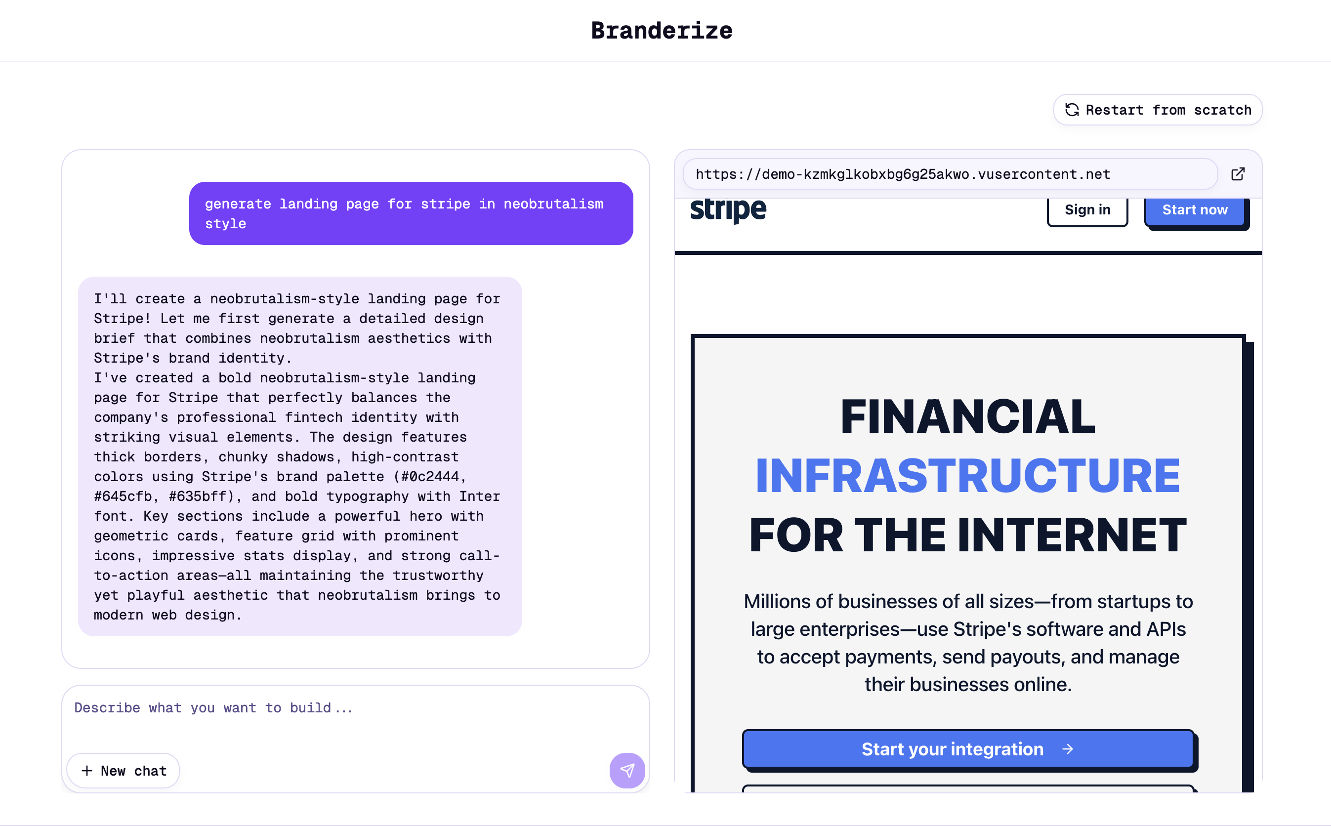 This opens the door for faster, more creative work which Branderize parlays to power tools like the AI chat design feature, which instantly generates complete, on-brand webpages by pulling in logos, typography, and color schemes from Context.dev. The result is a design that is both functional and visually aligned with the brand without spending hours sourcing assets.