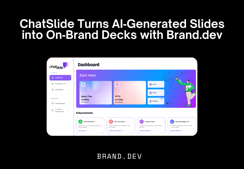 No asset folders or manual uploads. If a brand refreshes its logo, Context.dev's API keeps ChatSlide's output current, no maintenance or scripts ever required.